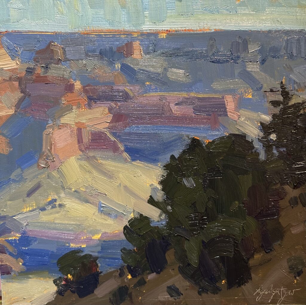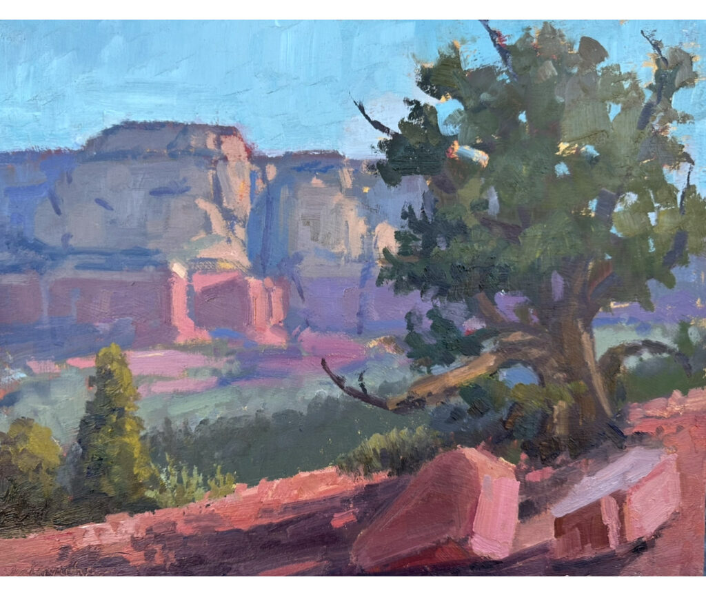 “Yavapai Point” 12×12″ Oil on Gessobord | $900| Available at Mountain Trails Gallery