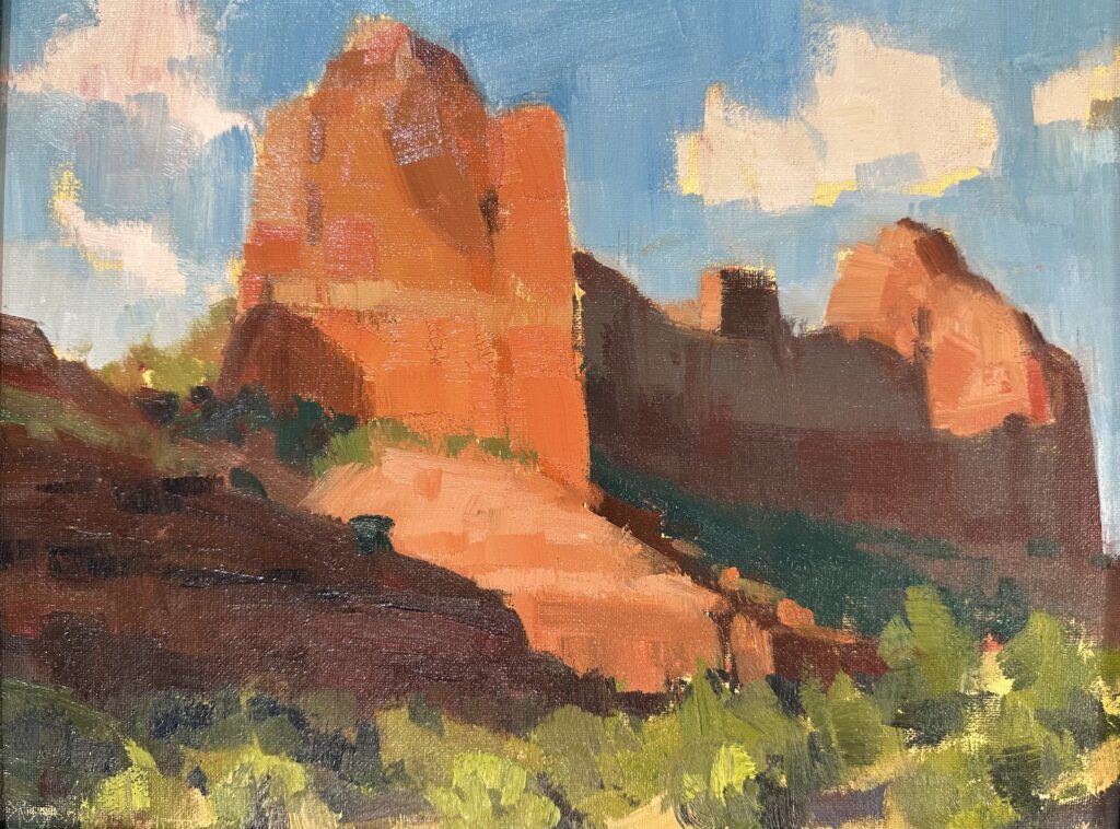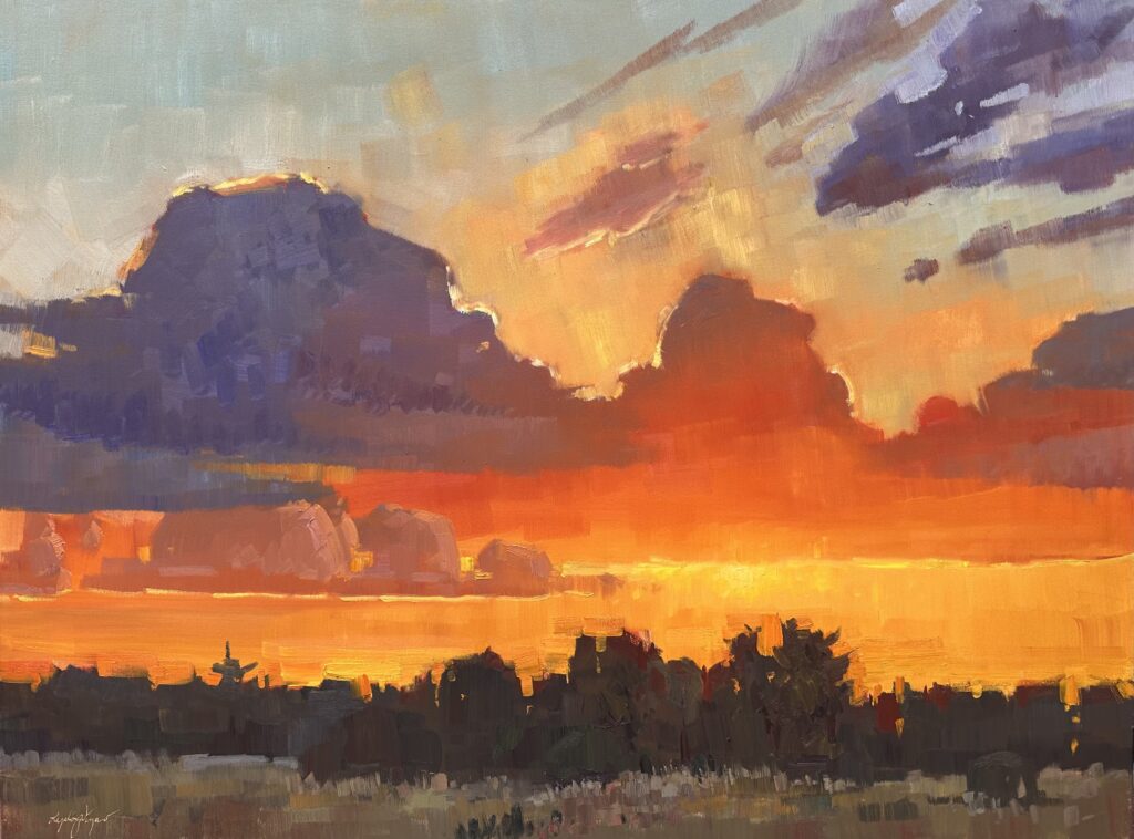 “Horizon Heat” 18 x 24″ Oil on Gessobord | $2200 | Available at Mountain Trails Gallery Sedona
