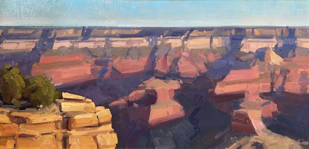 “Vermilion Rhythms” 12×24″ Oil on wood panel | $1750 | Available through Mountain Trails Gallery