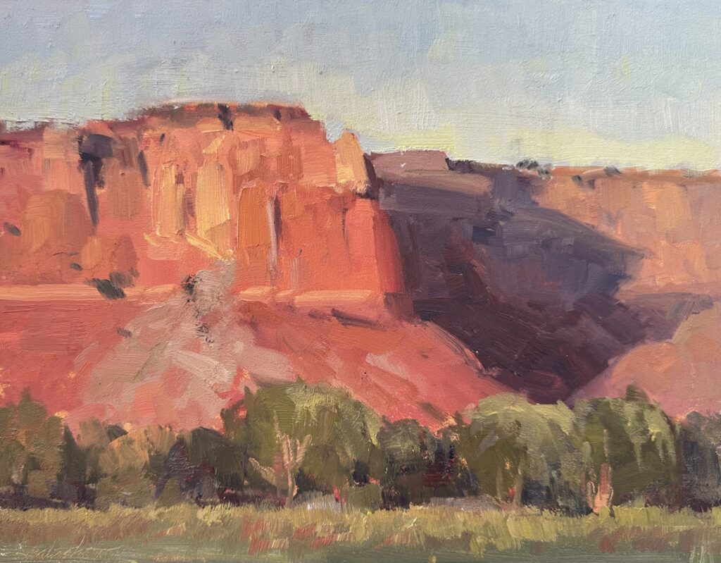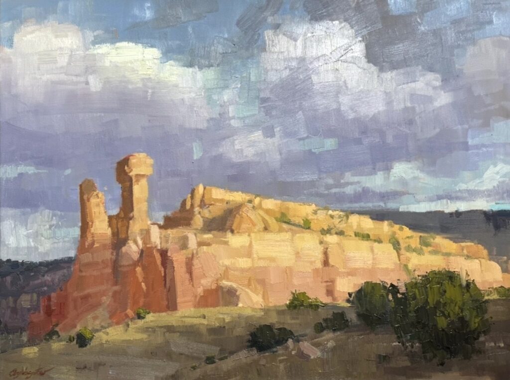 “Ghost Ranch Afternoon” 6×8″ Oil on Gessobord | $525 | Available at Legends of the West Fine Art Gallery