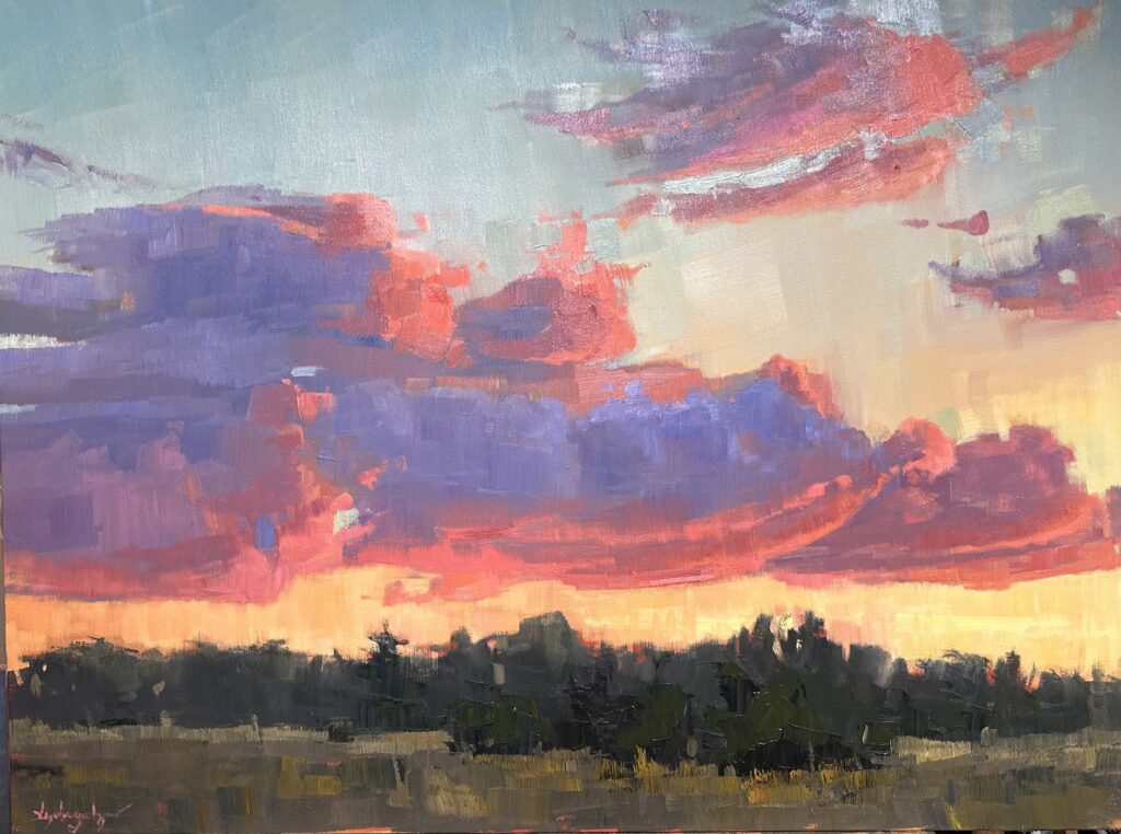 “Twilight Afterglow” 36×48″ Oil on Gessobord | $7200 | Available at Mountain Trails Gallery